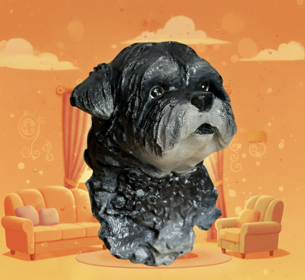 Hecho en PLA reciclable y pintado a mano, este mini retrato capta su esencia con ternura y realismo. Perfecto para regalar o para sentirlo cerca, incluso cuando estás lejos.